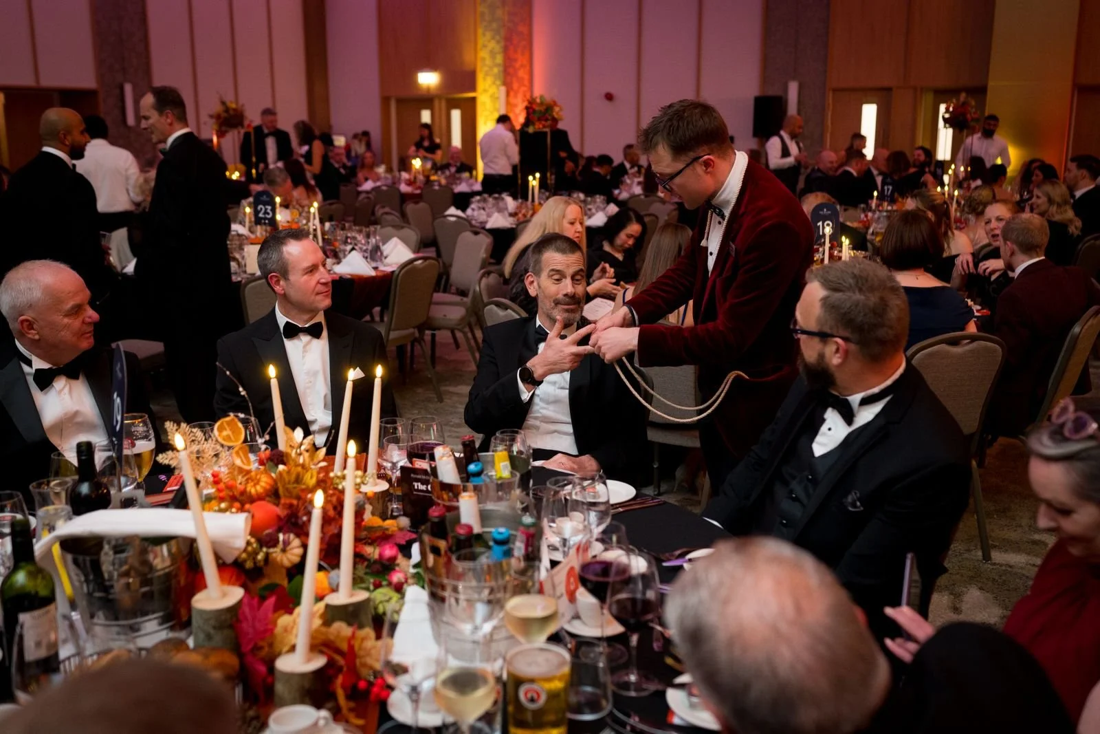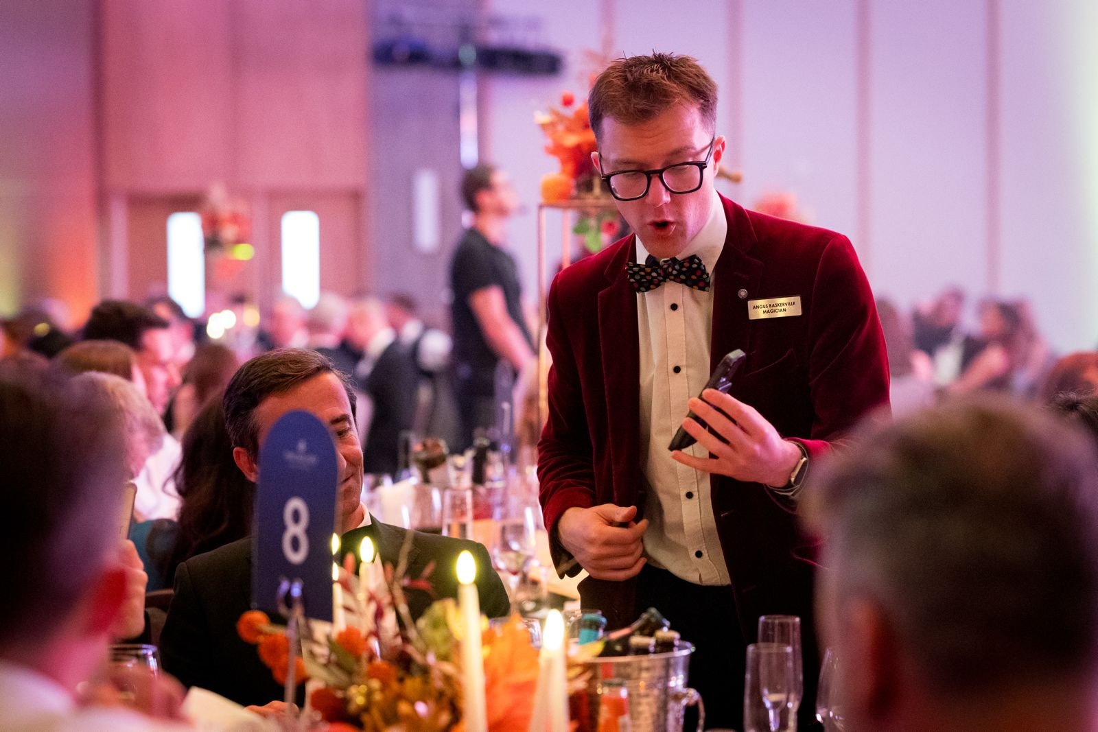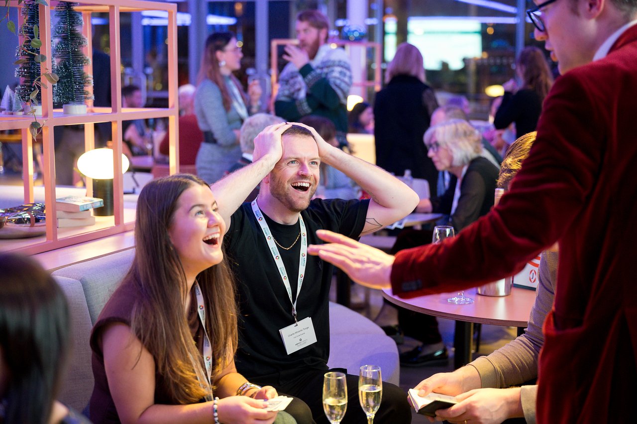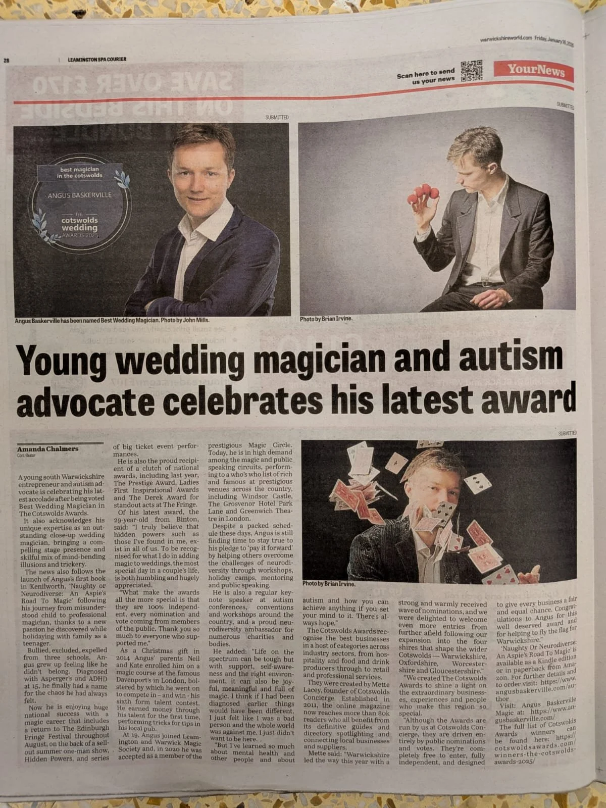 Angus Baskerville is a superb performer - charming, clever, funny. I'd never seen him before, and have no idea how he did the gob-smacking tricks he did. But, as he moved among the crowd at the party, he left a trail of amazed, impressed and thoroughly entertained guests.